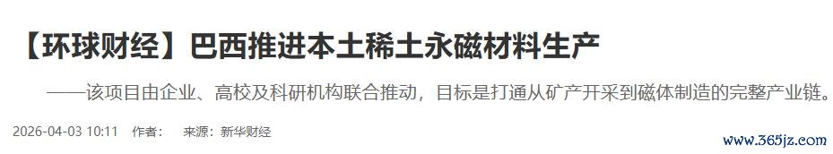 巴西拥有丰富的稀土资源与增长潜力,双方在资源与技术领域具有高度互补性,合作空间广阔而非零和博弈。技术换资源的合作模式,若能在合规框架内有序推进,可实现巴西产业升级与中国资源供应多元化的双重目标。